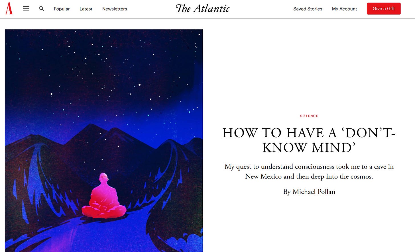 The Atlantic book excerpt article only increased my eagerness to read this book. “The Sense Field” and the part about the agony of meditating for hours at a time breaking down the self. So good. Hopefully I can catch one of the local events, too. Book pre-ordered. 👍